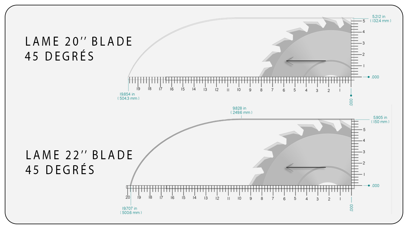 • Profile installation support can be to the right or to the left of the 45º saw based on need of customer.